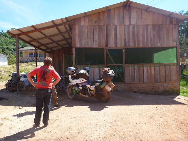 (Less than 20 kms outside of town, the bike stopped running. We flagged down two trucks coming from Manaus. They were nice enough to tow us back into town to a Honda shop, free of charge)